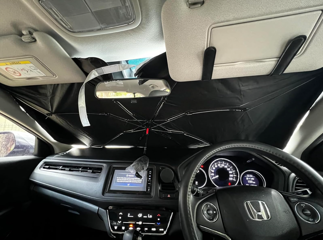 where tough design meets serious sun protection. Our premium 5 layer shade blocks 99% of UV rays and keeps your car cool. Built with a reinforced 10 rib frame, it’s made to last. Protect your ride, the smart way.