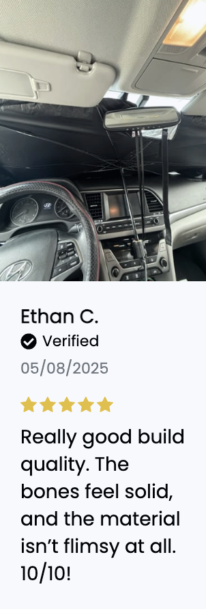 This isn’t your typical flimsy shade. The material is solid, the frame feels premium, and it actually blocks the heat. 100% recommend.